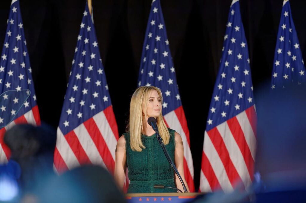 Com a idade de trinta e quatro anos, Ivanka Trump é vice-presidente executiva de desenvolvimento e aquisições na Trump Organization e tem a sua própria linha de artigos de moda. Ela também é casada e tem três crianças. Ela fala frequentemente sobre a interligação entre a vida profissional e pessoal, com forte ênfase nos negócios. Ela é uma forte defensora de um feminismo de estilo corporativo, cunhando a hashtag #WomenWhoWork (MulheresQueTrabalham) como parte da campanha de sua marca para promover o empreendedorismo feminino. Ivanka está cumprindo o papel que seu pai havia previsto para os seus filhos no livro de 1990, “Surviving at The Top”: o de seguidor gerencial.