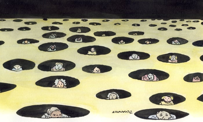 A catástrofe fundamental da modernidade é o desaparecimento de Deus como um Outro substancial. Assuntos como Donald Trump tentam compensar essa catástrofe, comprando seu caminho para a popularidade, que é simplesmente uma situação em que o Outro oferece demandas claras e distintas. Mas a popularidade, como o capitalismo, sempre leva ao desapontamento. Ninguém nunca é popular o suficiente, assim como nunca se tem capital suficiente. A mão invisível acaba nos traindo. Como sujeitos da modernidade, devemos existir sem uma mão visível ou invisível. Temos de dissociar a modernidade do capitalismo – uma dissociação que é o único caminho para a liberdade autêntica.