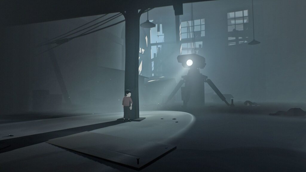 O jogador vê-se constantemente perpassado por uma forte experiência de angústia: o menino-protagonista, completamente indefeso, é perseguido e assassinado das maneiras mais brutais por seus perseguidores, humanos ou animais. Não há qualquer explicação para essa perseguição incessante, embora o jogo forneça elementos para a formulação de algumas hipóteses. O cenário colabora para reduplicar esse sentimento: escuro e desolado, com uma paleta de cores frias e pouco saturadas, ele se torna cada vez mais sufocante, criando uma experiência de desconforto e claustrofobia. Pouco resta da natureza nesse mundo pós-apocalíptico, o que mais se vê são as inúmeras instalações cinzentas pertencentes ao complexo industrial, povoado por dois tipos de homens: os responsáveis pela sua administração e as cobaias de algum tipo de experimento, homens-zumbi que perderam sua autonomia e só reagem a comandos e estímulos externos. Como não é explicada a origem dessa condição, não é possível saber se as cobaias já estavam assim previamente ou se foram criadas em experimentos de laboratório.
